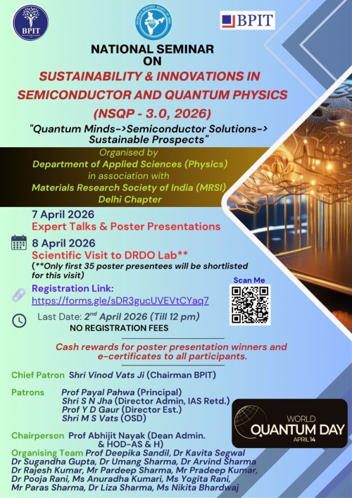 Mathematics is one subject that leads to skill- development and innovation, the more mathematical we are in our approach, the more successful we will be. Keeping in view the universality of the subject, mathematics faculty of BPIT provide the platform to the students to realize the beauty of this subject and embrace it for solving real life problems. At the Applied sciences and Humanities Department, we believe that technical knowledge, when combined with strong communication abilities, ethical awareness and civic responsibility, creates well-rounded professionals who are not only successful in their careers but also contribute meaningfully to society. Our highly qualified faculty members at BPIT, who are distinguished researchers and educators, bring more than a decade of experience to the classroom in the fields of linguistics, literature and communication. They are dedicated to providing a dynamic and interactive learning experience through engaging lectures, discussions, case studies and real-world applications. Beyond academics, we actively encourage students to participate in various co-curricular and extracurricular activities that refine their soft skills, leadership abilities and critical thinking. We invite you to explore our department and join us on this journey of knowledge, values and lifelong learning.